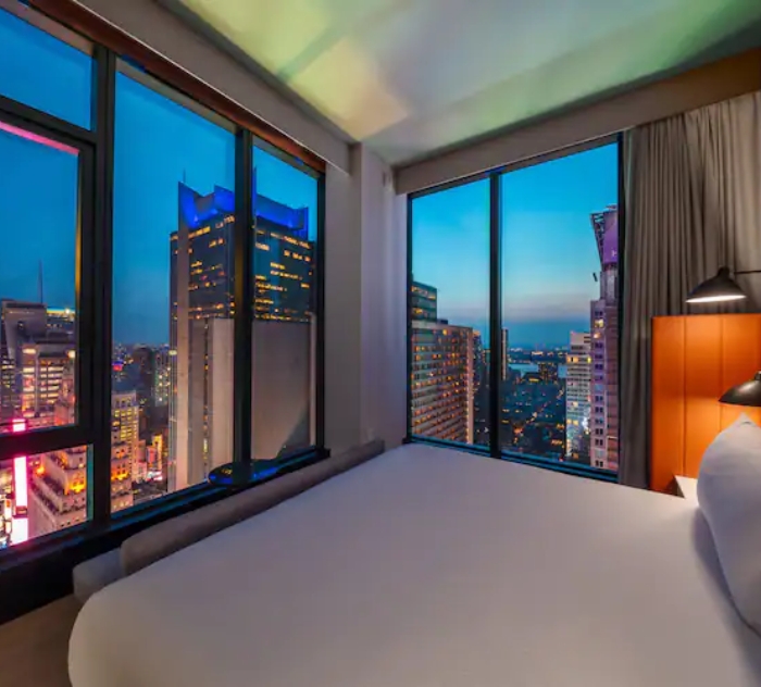Soggiornerai al Tempo by Hilton Times Square, un hotel dal design contemporaneo e dallo spirito energico, affacciato proprio sulle luci più iconiche del mondo. Camere luminose, servizi di qualità e una posizione che ti mette al centro di tutto, dal primo all’ultimo istante.