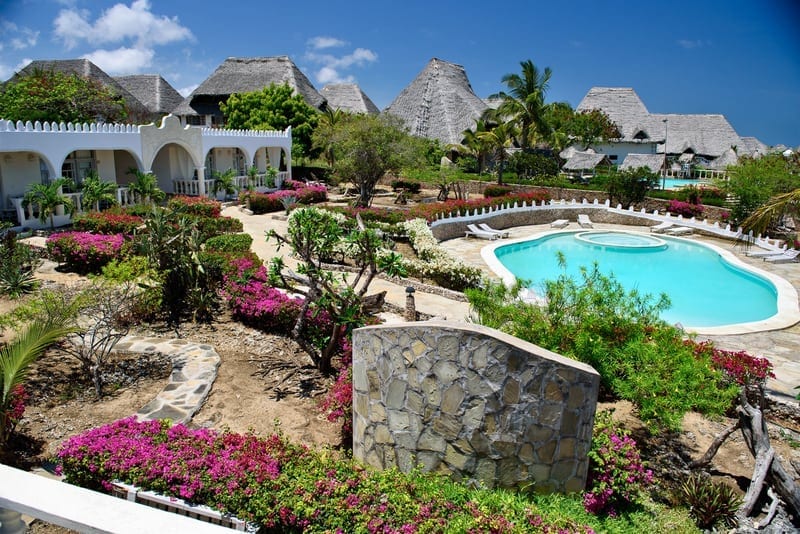 Incantevole resort a gestione italiana, immerso in un ambiente naturale incontaminato, circondato da un giardino di bouganville e piante tropicali. Sorge all’interno della Riserva Marina, occupando una superficie di oltre 50.000 mq, con 150 metri di fronte mare, su un’ampia spiaggia di finissima sabbia bianca di oltre 1 km, nella zona di Watamu, da cui dista 7 km di cui 5 km di strada sterrata corallina(15 minuti in auto). Malindi dista 14 km (i primi 10 dal resort in strada sterrata , 30 minuti di macchina in totale ), mentre l’aeroporto di Mombasa è a 125 km con trasferimento della durata di due ore e mezza circa. Durante la bassa marea si può godere di un suggestivo paesaggio per la formazione di piccoli atolli di sabbia corallina, che hanno preso il nome di ‘’Sardegna 2’’. L’atmosfera informale, la posizione privilegiata, la vastità degli spazi, la possibilità di muoversi liberamente fra le diverse zone e piscine, ne fanno la soluzione ideale per quanti ricercano relax ed ambiente incontaminato. Il resort dispone di 130 unità abitative arredate in stile locale e tipico letto Lamu con zanzariera, aria condizionata a controllo individuale, ventilatore, veranda o balcone. Telefono con collegamento alla reception, prese elettriche di tipo italiano, cassetta di sicurezza, asciugacapelli. Frigorifero con dotazione a richiesta e a pagamento. Buona parte delle classic è fornita di letto matrimoniale più letto singolo, mentre alcune più grandi possono ospitare sino a 4 adulti (letto matrimoniale + letti a castello). Vi sono inoltre diverse camere comunicanti. La reception, di ampia forma circolare e sormontata dal caratteristico tetto in makuti dispone di sala con tv satellitare con ricezione di Rai International, piccola cineteca con film in lingua italiana, piccola biblioteca, tour operator info point, servizio cambio valuta e una boutique specializzata in artigianato locale di pregio e antiquariato. L’area servizi si trova nei pressi della piscina centrale, su due livelli. Al piano superiore , le aree ristorante con splendida vista sull’Oceano Indiano. Adiacenti : l’ anfiteatro, il bazaar , il solarium. Al piano inferiore il bar principale aperto dalle 8 alle 24, area disco e spettacoli folkloristici locali , mentre il beach bar si trova direttamente sulla spiaggia. Beach restaurant : è il ristorante a la carte sulla spiaggia (aperto a pranzo e cena , a pagamento ) dove si possono gustare specialità di mare. E’ disponibile un campo polivalente di tennis e calcio a 5 con illuminazione (illuminazione a pagamento ). Palestra attrezzata a pochi passi dalla spiaggia. Beach-volley, tennis-volley, ping pong, biliardi, biliardino, freccette, bocce. Windsurf e canoa. A Watamu: centro immersioni (un loro rappresentante visita periodicamente il resort) e snorkeling. A Malindi: campo da golf e maneggio. SPIAGGIA : privata della struttura, di sabbia bianca, con zone ombra, palme, lettini prendisole, beach bar. Teli mare su cauzione. Sono previste nel resort tre serate settimanali di folklore africano : Masai (con cena tipica ), Acrobati, Danze e mercatino Giriama. Si organizzano uscite serali. Messa gospel in spiaggia la domenica pomeriggio. Disco beach il sabato sera (condzioni atmosferiche permettendo). Lezioni di pilates, lingua swahili, passeggiate sul reef.