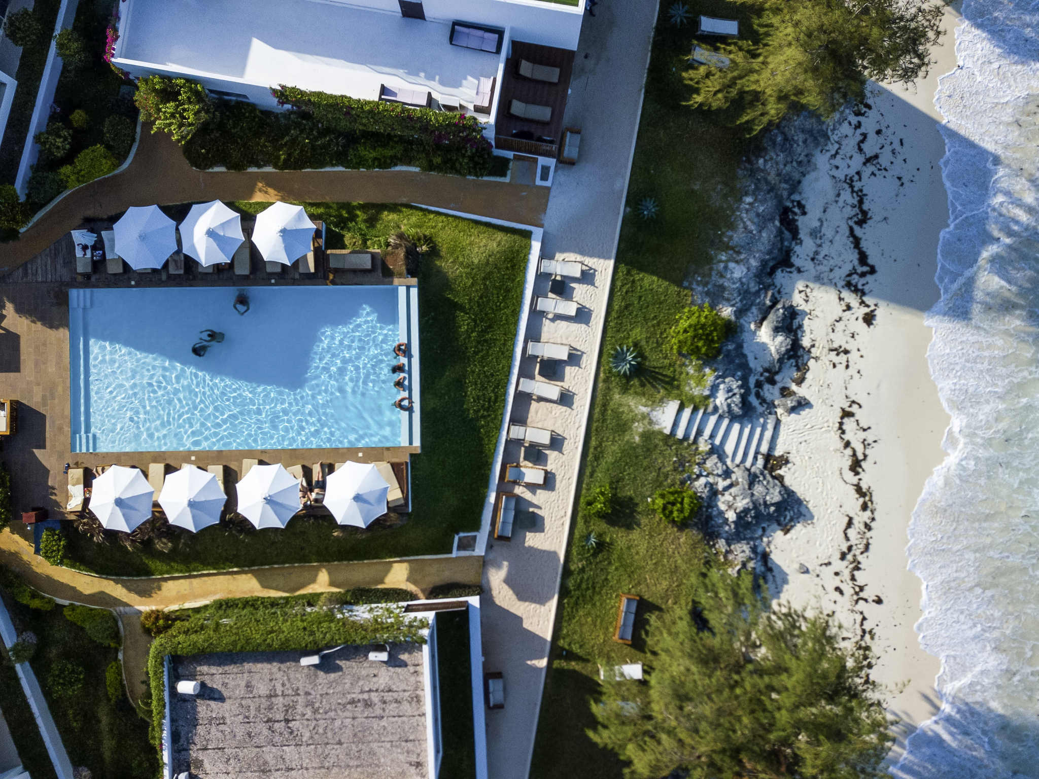 Nungwi Dreams è un 5 stelle che si trova sulla punta settentrionale di Nungwi, la spiaggia più apprezzata e incontaminata dell’isola di Zanzibar. L’hotel affacciato sull’oceano offre camere di alto livello e combinate con un’architettura moderna con sottili influenze swahili. Lusso e comfort si fondono con interni dal design moderno e contemporaneo. Gli ospiti possono scegliere tra viste sui curati giardini tropicali dell’hotel, sulla piscina del resort o sull’Oceano Indiano per ammirare alcuni dei migliori tramonti dell’isola. Le 57 unità dispongono di aree salotto; bagni moderni e tutta la tecnologia di cui potresti aver bisogno. Facile accesso a due grandi piscine a sfioro e ad una generosa terrazza che conduce direttamente alla spiaggia, soggetta a maree. Creato per offrire agli ospiti una base da cui esplorare le numerose gemme di Zanzibar, Nungwi Dreams offre hotel di lusso a piedi nudi diversi da qualsiasi altro a Zanzibar. Opzioni flessibili per i pasti, una Spa & Parrucchiere e lo Sky Bar che è il punto più alto con una vista a 360 gradi di Nungwi, perfetto per un aperitivo serale o una serata romantica. Altre strutture e servizi includono: palestra, accesso diretto alla spiaggia, bar a bordo piscina e zona pranzo esterna, Wi-Fi gratuito, servizio lavanderia, servizio in camera.